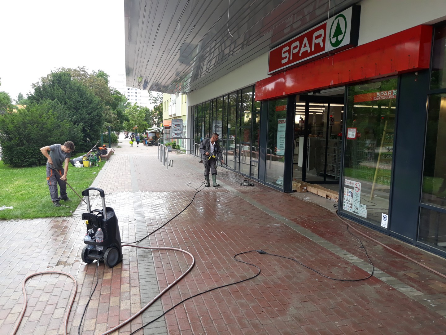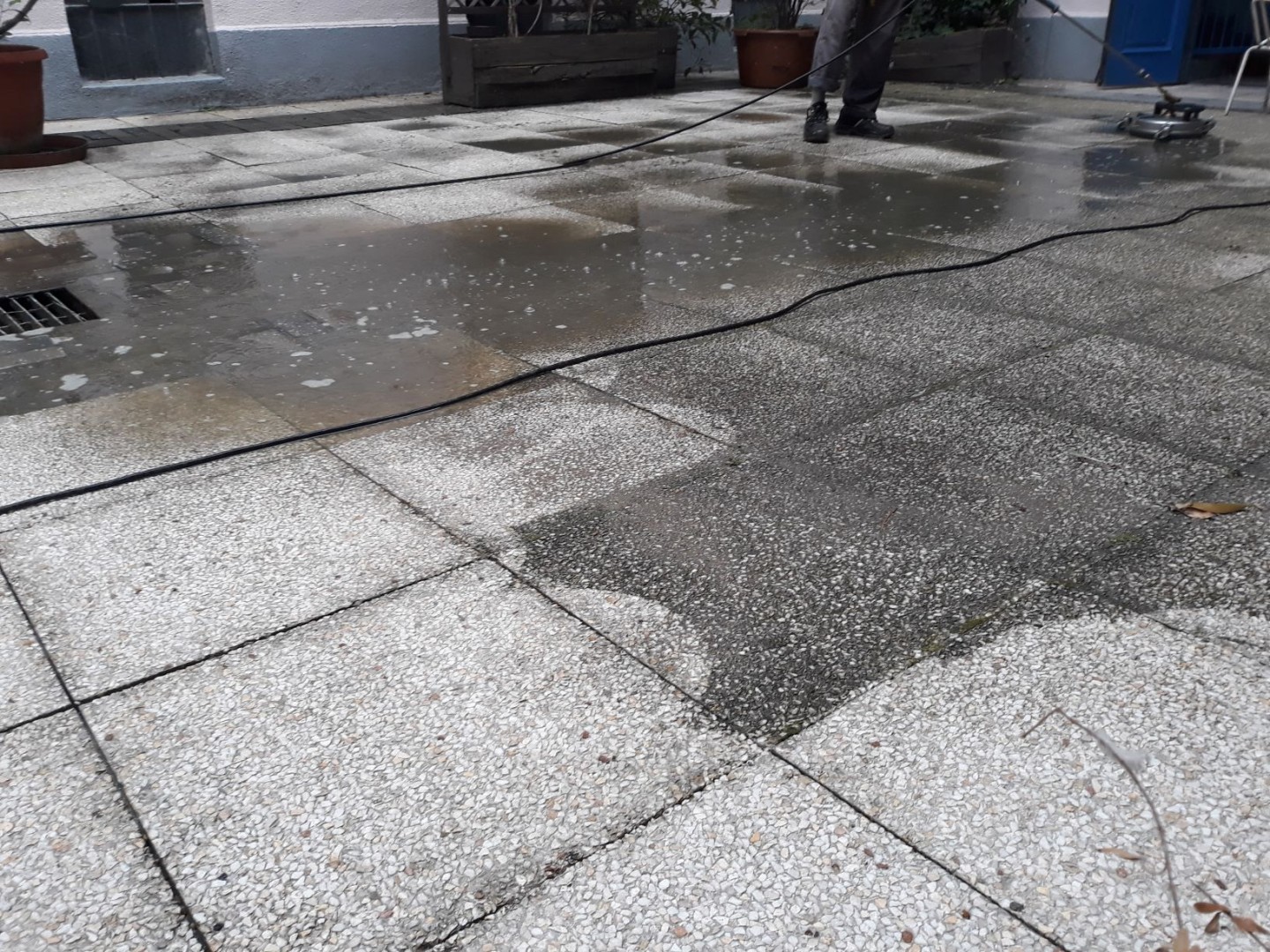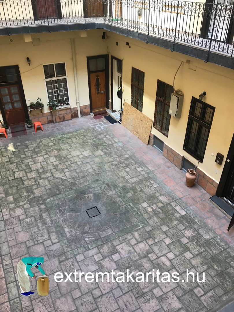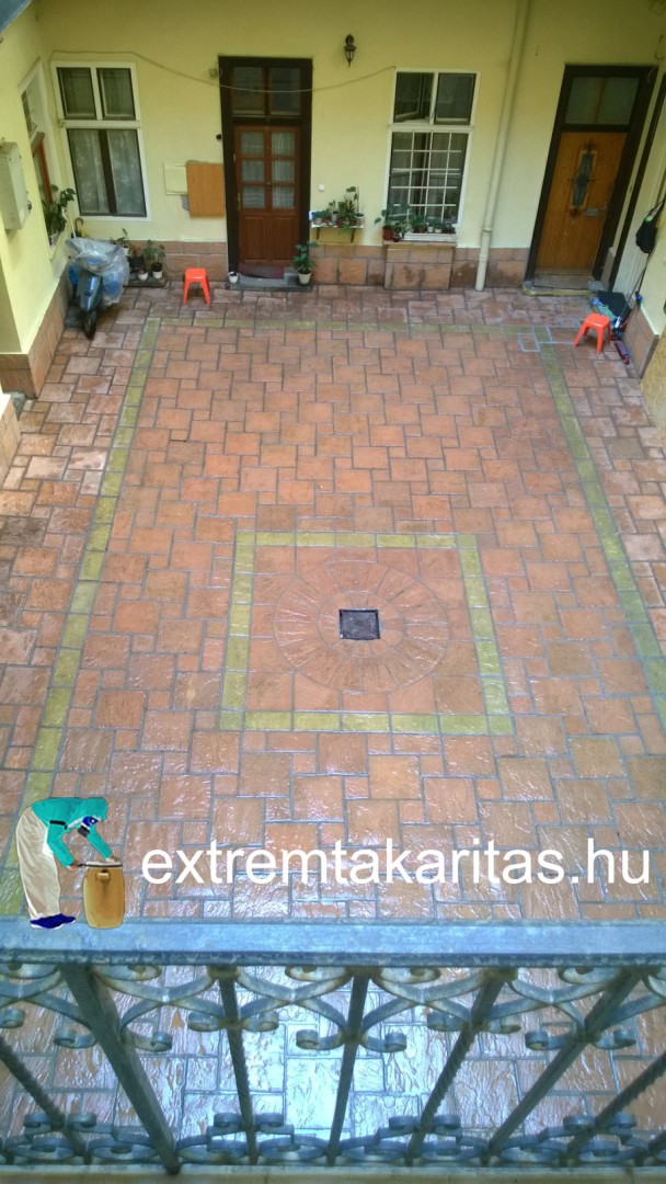 Belső udvar térkő tisztítás közben